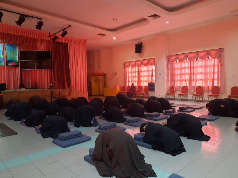 随喜赞叹大家参加檀香寺八关斋戒共修法会。自 疫情以来,今天是五十一位善友们首次在此共聚在五楼多元化礼堂,发心放下万缘,并以虔诚的恭敬心来礼敬三宝,一起来忏悔、发愿,受持一日一夜的八关斋戒。