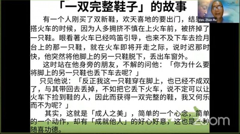 真如法师也勉励大众要「与人为善」、见得人好、成人之美。