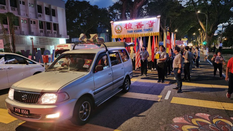 卫塞节花车游行全程7公里,在傍晚6时举行仪式后,花车队伍将从车水路开始出发,路经邦咯路、加拉歪路、太子路、霹雳路、中路、安顺路与油较路,再返回车水路马佛总。