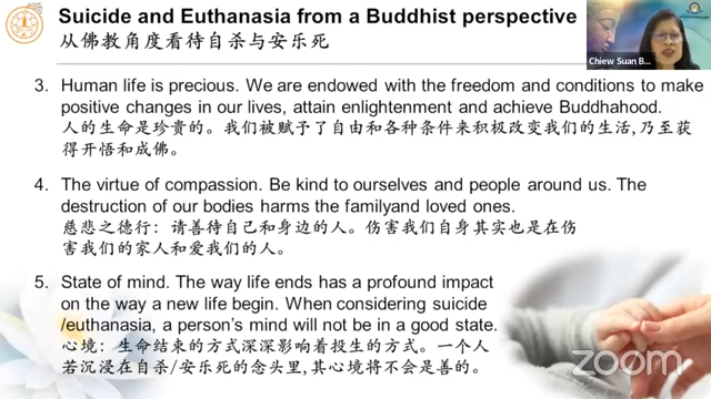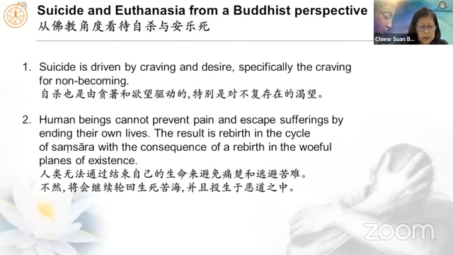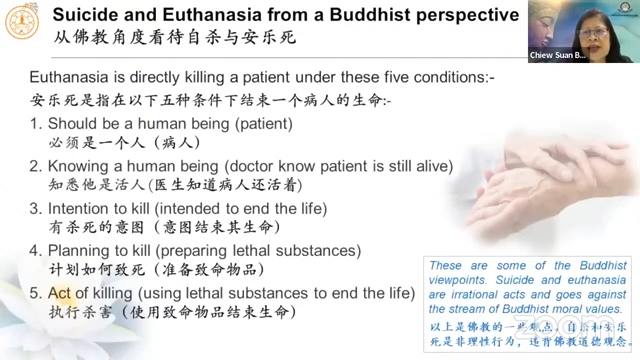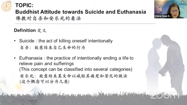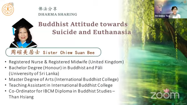 2023年7月7日(星期五)周碹美居士分享「佛教对自杀和安乐死的看法 Buddhist Attitude towards Suicide and Euthanasia」
