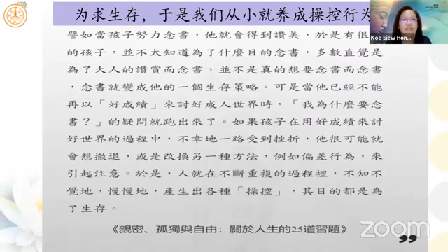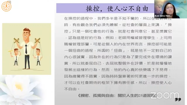 槟城檀香爱心福利中心主席高秀凤居士分享「亲密与操控」