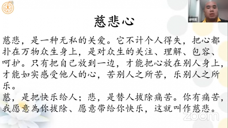 2023年11月3日(星期五)谢明育居士分享「用慈悲心去温暖人间」