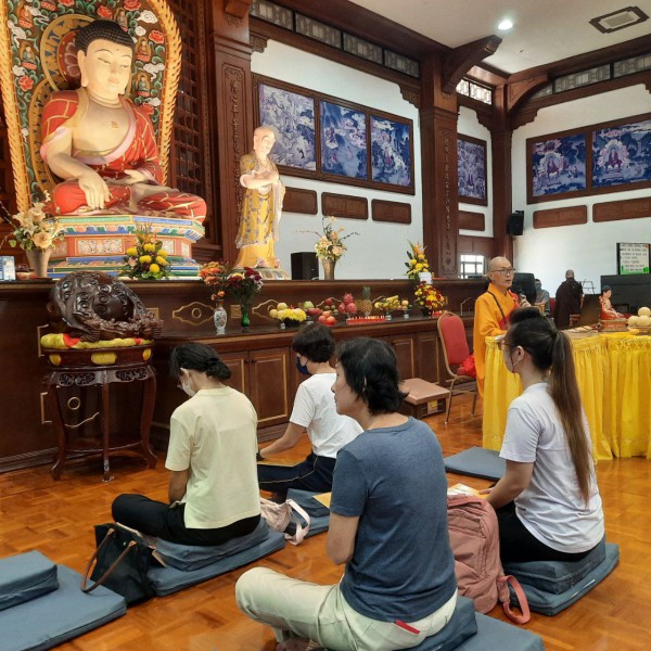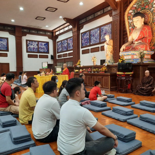 2024 年5日22日(农历四月十五日)是佛陀日,檀香寺于6楼大雄殿传授三皈五戒,恭请真如法师主法,共有13人报名参加,其中8人参加三皈依仪式,5人报名受持五戒。