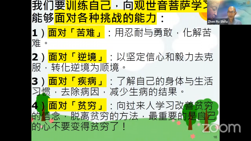 除此之外,我们也要训练自己,向观世音菩萨学习能够面对各种挑战的能力: