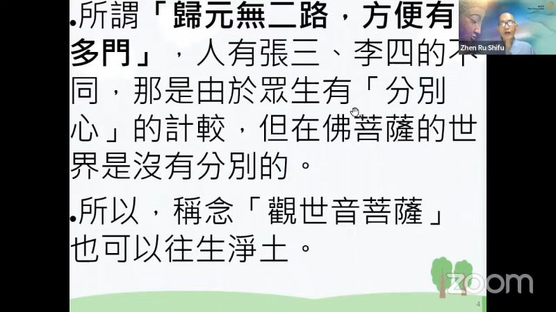 真如法师引用星云大师著作《僧事百讲4﹒集会共修》的第11讲〈观音法门〉提到,念观世音菩萨圣号,一样能往生西方极乐世界!