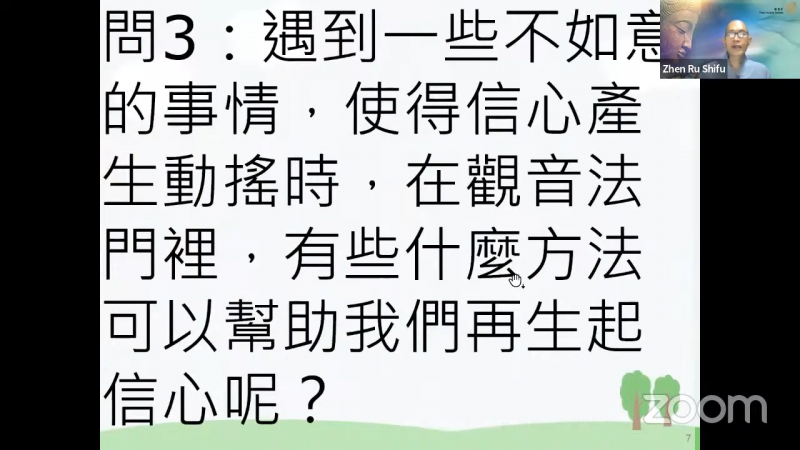当我们遇到一些不如意的事情,使得信心产生动摇时,在观音法门里,有些什么方法可以帮助我们再生起信心呢?