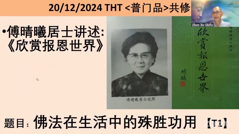 2024 年 12 月 20 日(星期五)檀香寺真如法师慈悲开示「佛法在生活中的殊胜功用(一)」