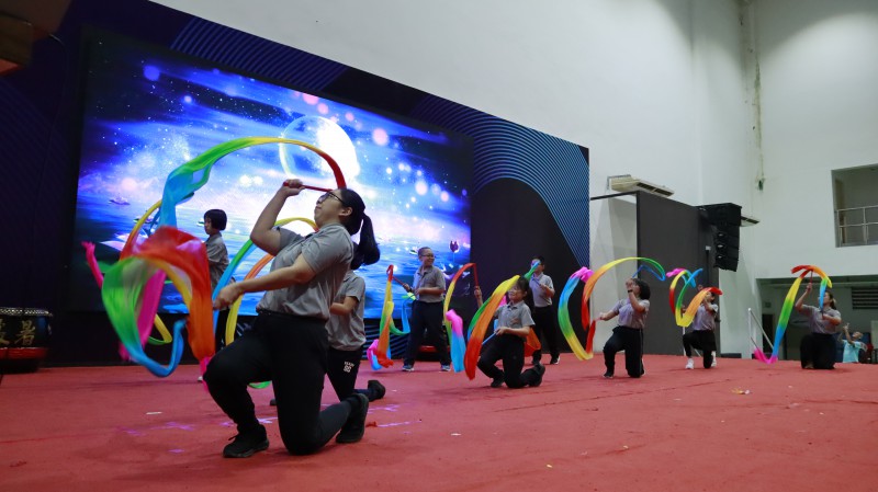 其中一个让我最深刻的画面,是一位年长的爱心妈妈走来对我说: “只要你不嫌弃我,我就愿意上台表演。” 这一句话真的让我很感动。她坦白说,年纪大了,记性没有以前这么好了,可是她依然非常用心。回到家,她就一遍又一遍地看视频练习,还把《我们是一家人》的歌词默默背起来。她没有因为年龄退缩,反而把参与当作一种护持,一种发心。