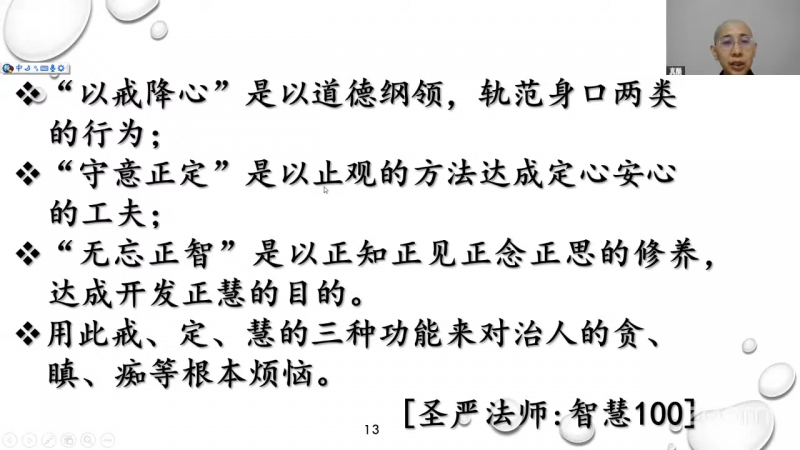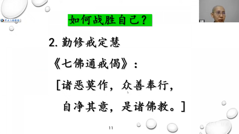 戒定慧是三无漏学,《七佛通戒偈》告诉我们:「诸恶莫作,众善奉行;自净其意,是诸佛教。」