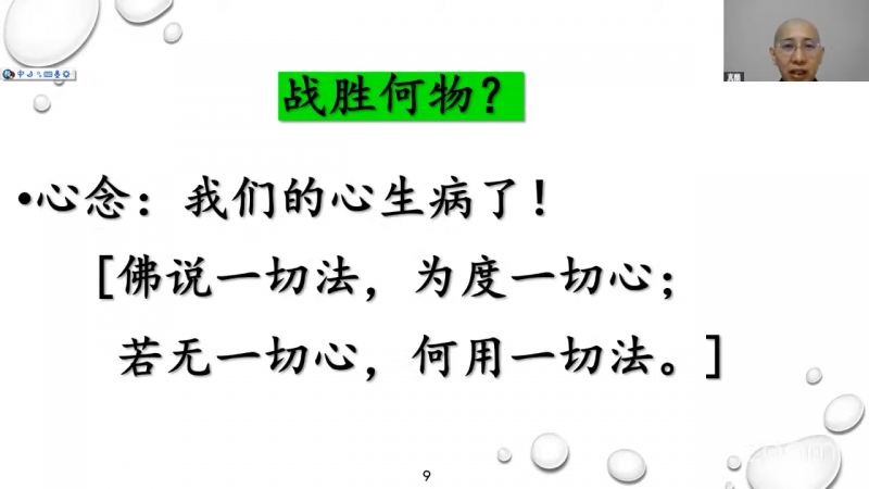 我们要战胜自己的妄想执着、贪、嗔、痴、慢、疑、不正见及心念。