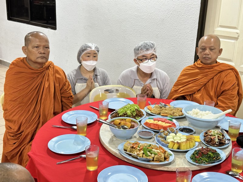 随后,南传法师带领大众结斋并回向功德。接着由北传真如法师继续引领诵念,结斋,回向功德。回向功德仪式结束后,南北传法师们陆续离席。本次的MBSA 斋僧会到此圆满结束。