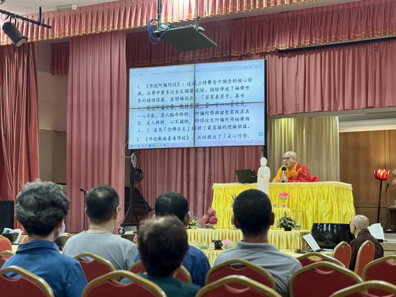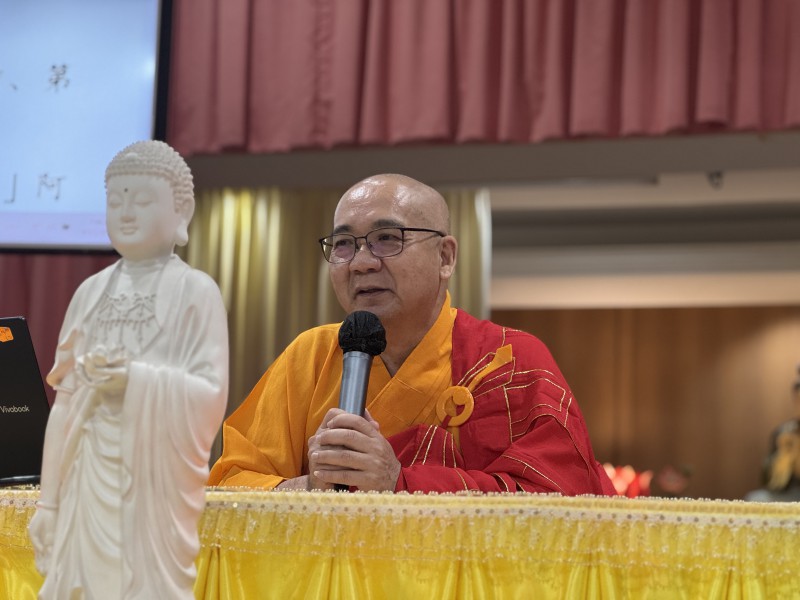 随后,新任住持真升法师为大家慈悲开示,内容涵盖“「是心作佛,是心是佛」的修行原理”、“阿弥陀佛「四十八愿」的念佛往生法门”以及“「三时系念」法会的核心宗旨”。