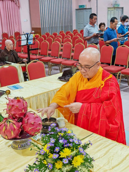 槟城檀香寺于农历七月二十四日(2025年9月15日)晚间七点半,在五楼礼堂隆重举行洒净仪式。
