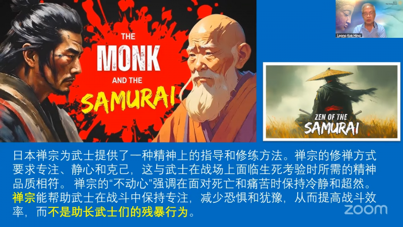 日本禅宗为武士提供了一种精神上的指导和修练方法。禅宗的修禅方式要求专注、静心和克己,这与武士在战场上面临生死考验时所需的精神品质相符。 禅宗的“不动心”强调在面对死亡和痛苦时保持冷静和超然。 禅宗能帮助武士在战斗中保持专注,减少恐惧和犹豫,从而提高战斗效率,而不是助长武士们的残暴行为。