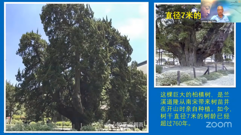 直径 7 米的柏槙树是兰溪道隆从南宋带来树苗并在开山时亲自种植。如今,树干直径 7 米的树龄已经超过 760 年。