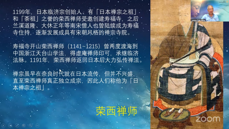 荣西禅师是日本临济宗的创始人,南宋期间两次来中国学禅,参谒天台山万年寺虚庵怀敞禅师,得授临济宗心印。他将佛教教义与日本文化结合,促进了日本佛教的发展。