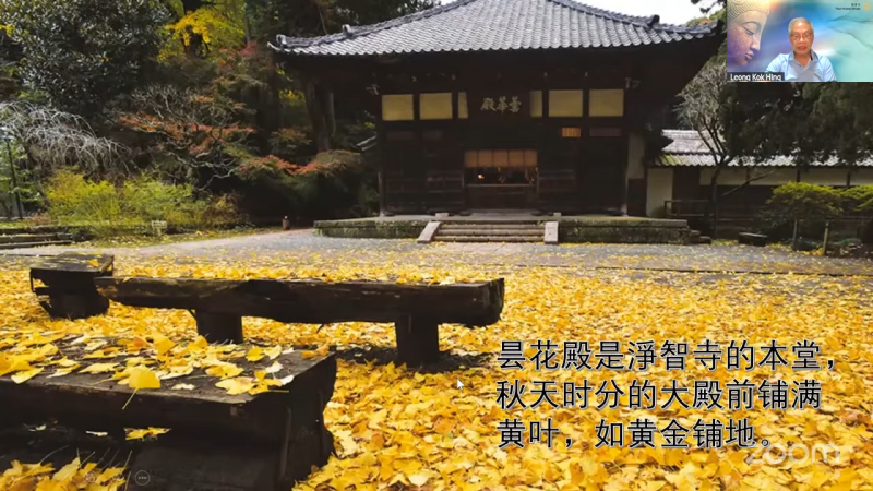 昙花殿是淨智寺的本堂,秋天时分的大殿前铺满黄叶,如黄金铺地。