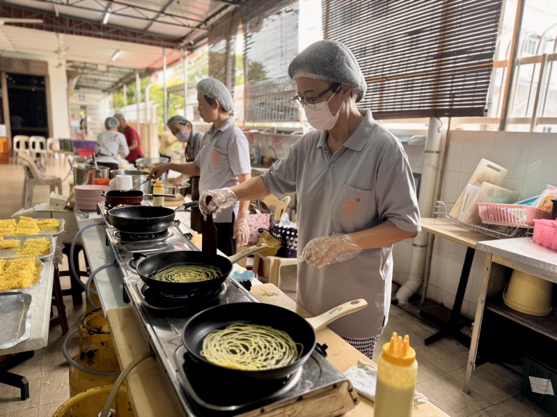 除了外送饭盒服务,檀香寺还设有面食档口。九天期间,每日供应不同种类的面食,如:爪哇面、福建面、卤面、咖喱面、叻沙、炒鸳鸯等。这也得益于另一组义工与职工们的全力护持。