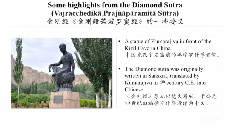 《金刚经》原本以梵文写成,于公元四世纪由鸠摩罗什尊者译为中文。