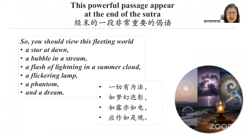 经末的一段非常重要的偈语:「一切有为法,如梦幻泡影,如露亦如电,应作如是观。」