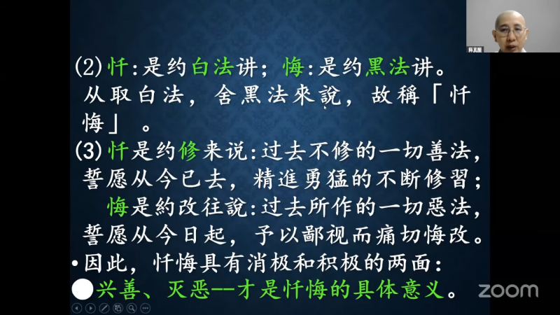 (2) 忏:是约白法讲;悔:是约黑法讲。
