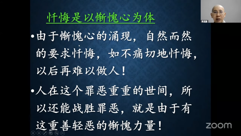 由于惭愧心的涌现,自然而然的要求忏悔,如不痛切地忏悔,以后再难以做人!