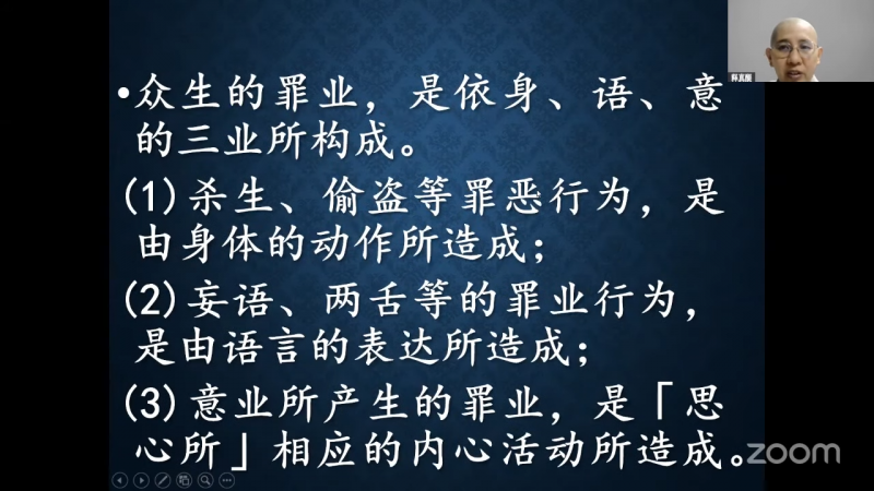 (1) 杀生、偷盗等罪恶行为,是由身体的动作所造成;