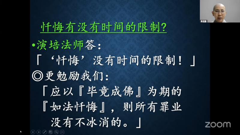 演培法师答:「『忏悔』没有时间的限制!」更勉励我们:「应以『毕竟成佛』为期的『如法忏悔』,则所有罪业没有不冰消的。」