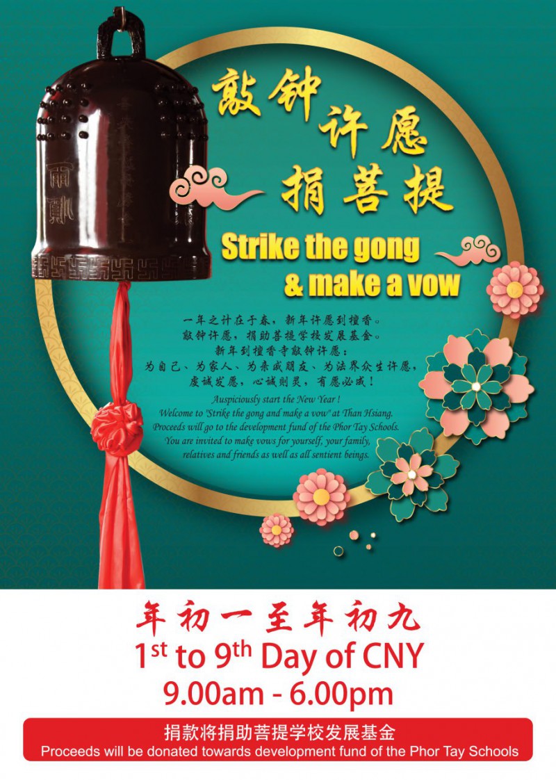 一年之计在于春,新年许愿到檀香。敲钟许愿,捐助菩提学校发展基金。