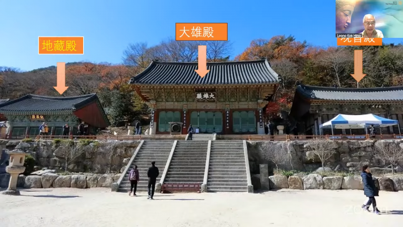 大雄宝殿的外面有两座塔,分别是释迦塔以及多宝塔。( 去年,APEC 在釜山举行的时候,韩国政府就发行了一张邮票,邮票上面就是这两座塔的设计)。