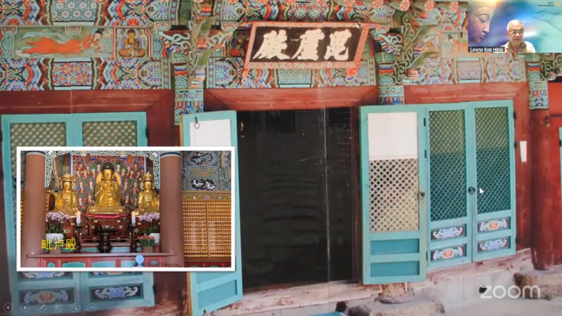 「毘卢殿」就像名字一样,供奉着毘卢舍那佛。后来给大火烧光。 到 1973 年才重新复元建造,所以建筑的样式比较倾向后朝鲜时代,没有过多的花纹等装饰。