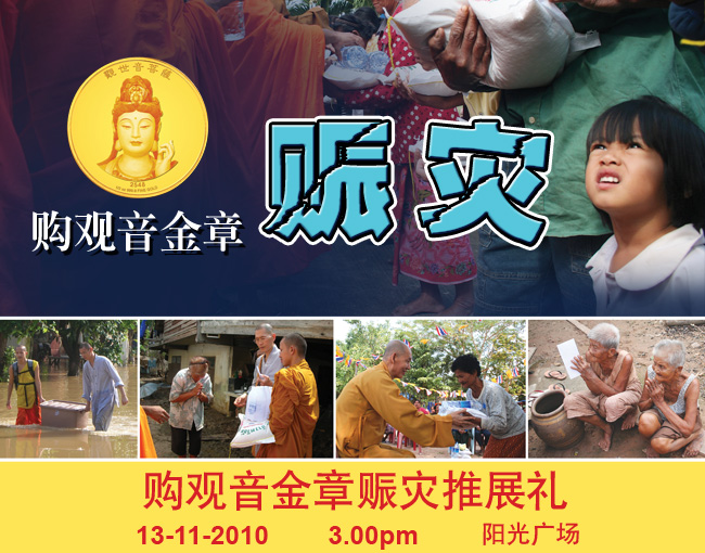 请把慈悲付诸于行动,支持《购观音金章赈灾》活动。所有收入悉数捐助泰国水灾、北马区水灾及印尼火山地震海啸赈灾基金。