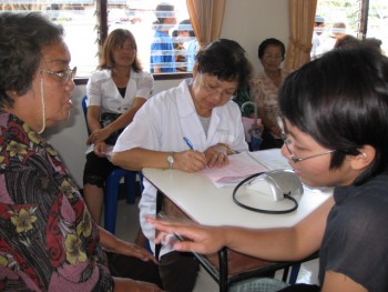 六月六日早上六时,许多病黎也经已在候诊室等待。医师们用完早餐后便提早开诊。但由于通译员尚未上班,医师们唯有应用刚学会的几句泰语勉强与病人沟通:“Yap Thong Nai?”(那里痛?)病人就用手指出疼痛部位。“Bao What?”(有没有糖尿病?)“Mai Me”(没有)。然而此种问诊方式不甚理想,医师们还是选择以脉诊、看诊以辨证治疗。是日到来看诊的病黎也有一百七十三位。