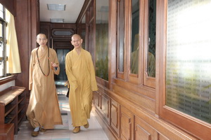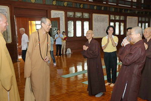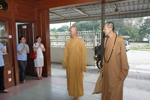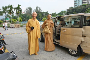 二零一二年五月二十一日初一早上,檀香寺住持唯悟法师已经率先前往槟城机场接驾慧明法师。另外,泰国国际佛教大学真禅法师於事前飞往印尼陪伴慧明法师来马。为此,檀香寺在六楼大雄殿为慧明法师进行简单但不失隆重的接驾仪式。在半小时前,常住僧俗二众及一些信众已经在大雄殿两侧静候慧明法师的莅临。