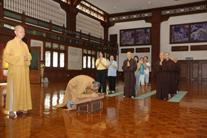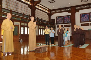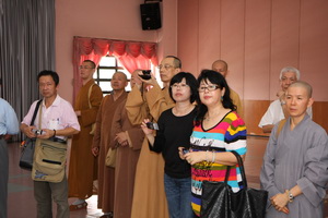 在慧明法师驾临大雄殿后,檀香寺真禅法师敲三大磬后呼众人向慧明法师顶礼三拜,慧明法师随答一拜。在离开大雄殿前,慧明法师亲切向大家问好。唯悟法师事后引领慧明法师到客房休息。再来,来自沙巴慧明法师道场的僧俗二众会在另一个班机抵达槟城。在出席11点的新闻发布会后,檀香寺僧众陪同慧明法师及随团众在斋堂用餐。午餐后,唯悟法师与慧明法师一行人到五楼多元化礼堂参观骆拓的巨幅水墨画。接着,慧明法师及随团众即启程太平弘法。
