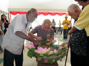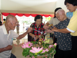 真如法师也在这个殊胜的日子以佛德广大、同证法身和生佛平等三个重点来解说《浴佛偈》。师父也带出马佛总今年的卫塞节主题:〈爱国护教,团结全民〉。马佛总总会长释日恒法师指出: “团结与安宁世界,从每一个人的爱心开始,爱心遍法界,善意满人间。因此,真诚的爱心,才能给我们世界带来真正的和平。只有从每个人都真正能够从自我做起,愿意付出我们真诚的爱心,我们的世界才能变得和谐与圆满!”这与佛典中一再强调的慈爱相吻合, 比如在《法句经》里有说到“在这世上,仇恨绝不能止息仇恨,唯有以慈爱心方能止息仇恨,这是永恒的真理。”《清净道论》也教导我们“要先对自己培养慈爱心,再以慈爱心去善待别人,乃至把慈爱扩展到一切众生的身上。”