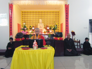 中午12时半,传授三皈五戒的仪式在真如法师的主持下开始了,共有14位佛友皈依,3位佛友受五戒。师父先向佛友开示三皈五戒的内涵及其利益,再进行传授仪式。受三皈五戒的佛友们向真如法师领取三皈五戒证书后,维那师父带领大众回向,仪式就圆满结束了。