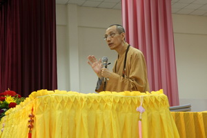 从慧明法师在台上丰富的说法表情,一举一动无不增添法音的生动处。法师说法中多国语言的运用(普通话、闽南语、粤语、英语),让人耳目一新,倍感亲切!现场上,当法师谈到精彩部分时,信众掌声连连,笑声此起彼落。