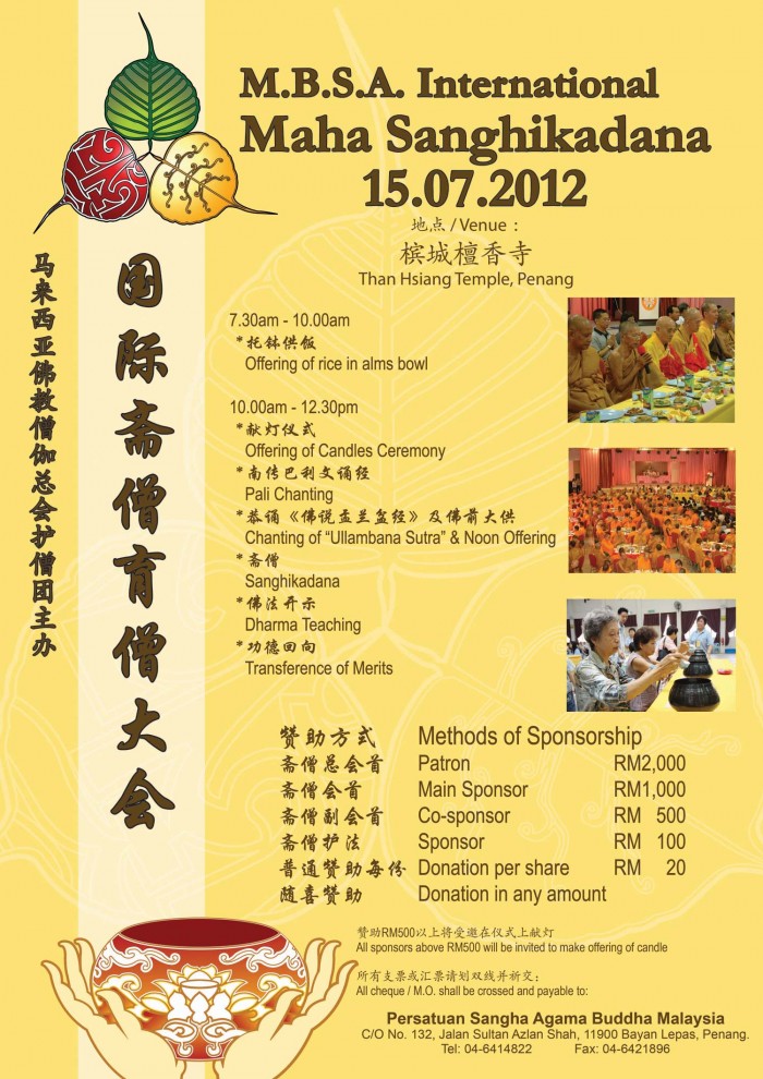 (槟城14日讯)马来西亚佛教僧伽总会护僧团订于2012年7月15日(星期日)假槟城峇央峇汝檀香寺盛大举办【国际斋僧育僧大会】。