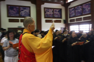 过后和尚也带领众戒子感恩诸位法师的带领、诸位戒子互相成就对方、诸位在台前幕后的护法成就这次的精进佛七。