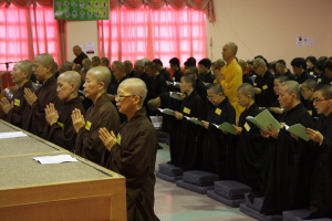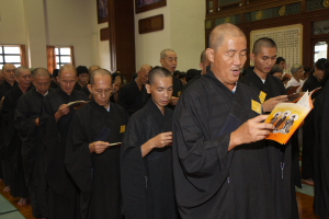 圆满日(18日)上午特别安排戒子们到晚晴苑和老菩萨一起念佛和写心得,并在上午11时集合到大雄殿举行佛前大供和弥陀普佛,上供十方常住三宝,中奉微尘刹土圣贤,下施六道四生等众,更以此佛七念佛殊胜功德,回向戒子们的历代祖先过往先灵,累世父母师长眷属和历劫冤亲债主。