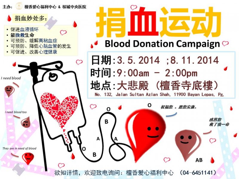 只要您符合条件,我们鼓励您,欢迎您抽空前来参与即将在五月及十一月进行的2014捐血运动。