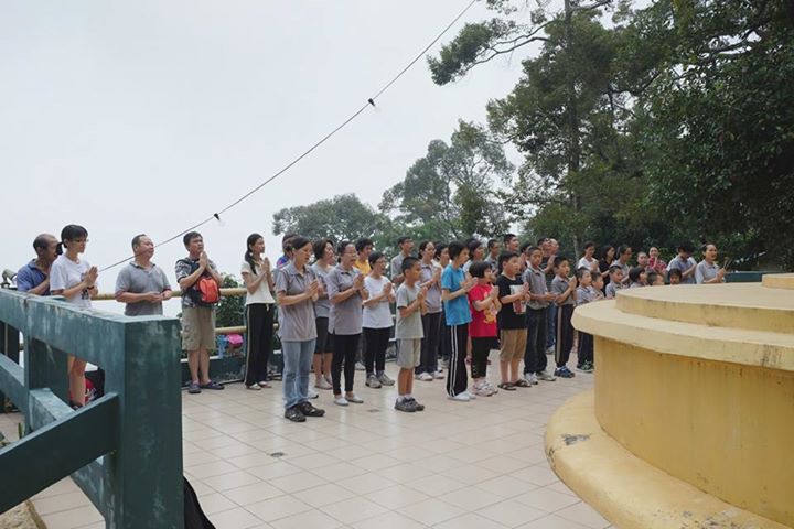 8时25分,众人在准备妥当之后就开始登山。抵达山腰分叉路已是8时37分之事,大伙在告示牌的指示下向右手方向继续努力前进。虽山路陡峭,可一路有威省壮美的风景迤逦在侧相伴,已足以慰藉大家的辛劳。9时05分,众人已陆陆续续抵达山顶。当时,大众除了在慧贞师姐的带领下,绕塔三匝外,亦趁此难得机缘四处游览秀丽景色,拍照留念。直至10时35分,大众方才摄心,聚集于正殿,等待Banthe Pasana Ciho的佛法开示。