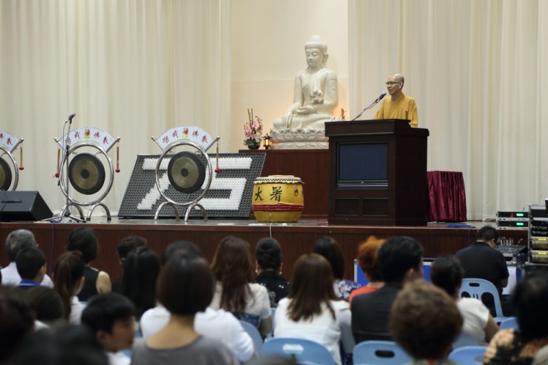 过程中,17位实力雄厚的参赛者陆续登台高歌佛曲,大会评审则认真仔细地为每一位参赛者进行评估。矗立于礼堂的佛陀像见证着每位参赛者的用心,聆听他们发自真心的歌唱,庇佑每位参赛者顺利完成比赛。