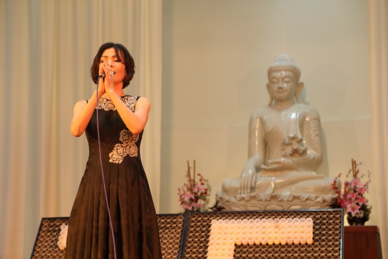 大约晚上9时40分,表演嘉宾为大家带来优雅美妙,扣人心弦的歌曲,所献歌曲有“喜欢你”、“一二一二一”、“梵文大悲咒”、等等多首歌曲,在场的信众纷纷听出耳油,陶醉于他们美妙的歌声之中。