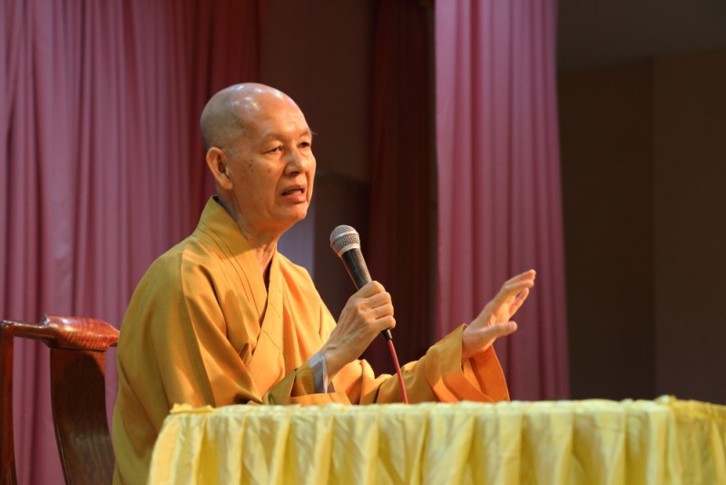 余兴节目告一段落,进入唯悟师父开示环节。从中,师父强调发善愿,做善事需要心动但更需要实际行动。师父提起缅甸的佛教学校师资缺乏的情况,师父亦希望在座佛友能帮忙解决缅甸佛教学校师资缺乏的问题,造福学子。在此环节中,也有凤嫦居士分享她与几位义工菩萨跟随唯悟师父前往缅甸参与“世界和平会议”之旅的点点滴滴。看过每一张正经八百又严肃与开会相关的照片,忽然,师父一张突兀的打乒乓照片深深地吸住大家的视线,“这是我前往缅甸开会行程中最轻松的一张照片啊!”,师父笑而言道。现场掀起了一阵笑声,师父真是辛苦了!