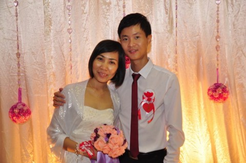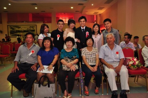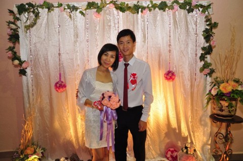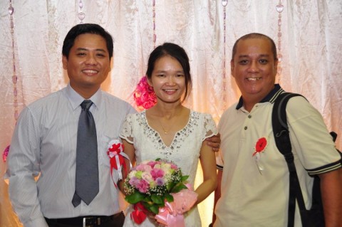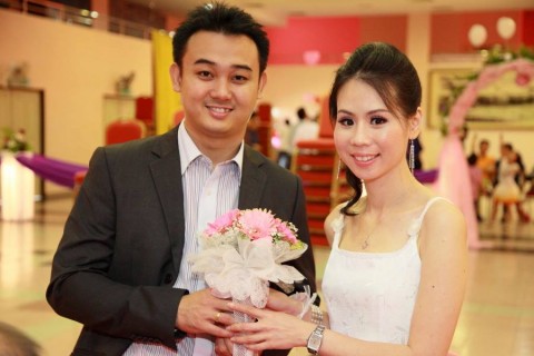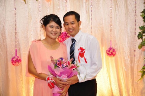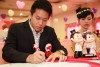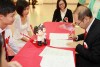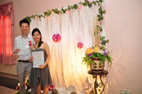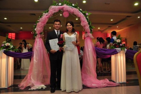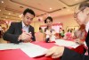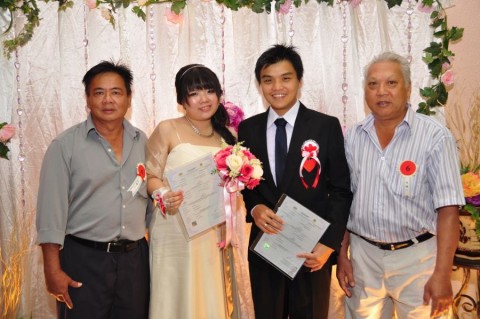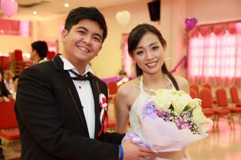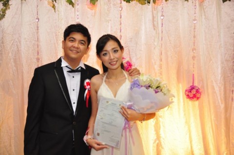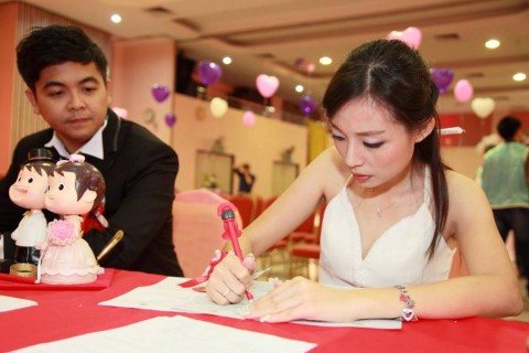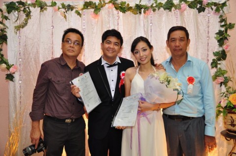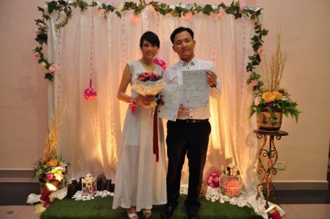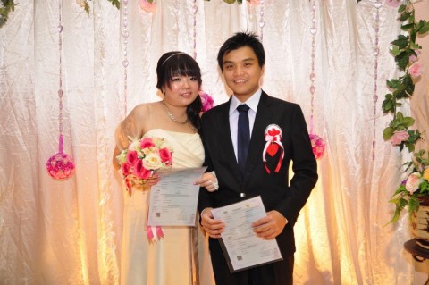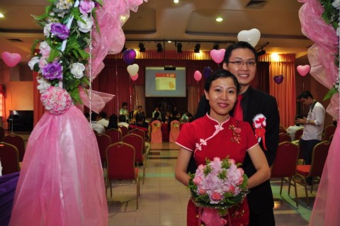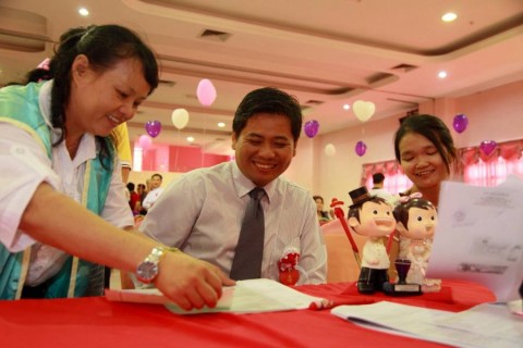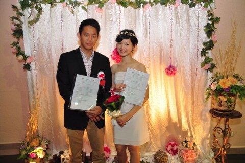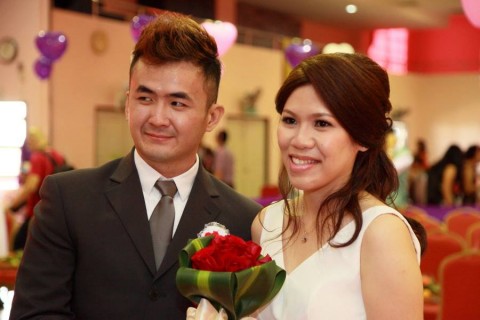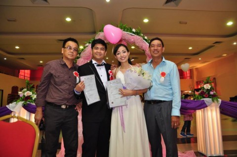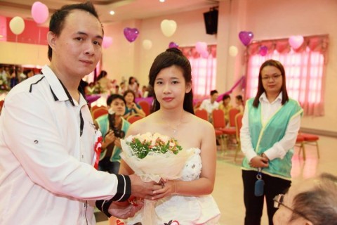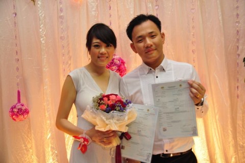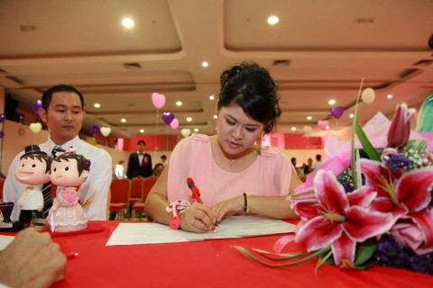 婚姻注册官助理陈炳根先生在五楼礼堂为13对新人主持婚姻注册。