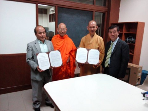 受唯悟法师委托帮忙載送韩国贵賓前往国际佛教大学签署学术合作备忘录。 6月23日供僧法会结束后,我们一行人匆匆趕去泰南。抵达大学后已是傍晚时分。贵賓们参观大学后,便与唯悟法师签署备忘录。此团共有六位韩国嘉賓。队长为留学英国伦敦大学的李治兰博士。李博士目前为海东经典学院院长,也从事翻译工作。
