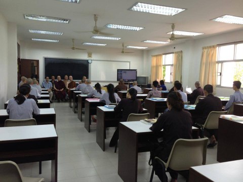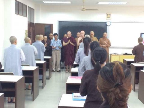 院长简略地介绍国际佛教大学的创立历程及所开办的院系。院长语重心长地勉励同学们,虽然大部分同学是越南人,但千万不要怕困难,只要肯努力,一定会有成果。