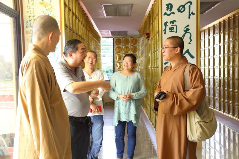 Submitted by Ah Jin on Fri, 28/07/2017 - 17:22 明强来自台湾高雄佛光山的释慧裴法师,于2017年7月28日(下午2时半)莅临檀香寺。由檀香寺首座真如法师和职员一起接驾。 真如法师先带领慧裴法师到六楼大雄殿礼佛,过后再带法师参观了檀香晚晴苑、幼儿园、以及三圣殿。 慧裴法师 来自马来西亚槟城,2005年到台湾佛光山修读佛学。目前担任台湾佛光山都监院院长特别助理。 在檀香寺用过茶点后,法师于下午四时离开檀香寺到机场。法师将于明早回去台湾佛光山。 活动报导 Log in to post comments6004 reads